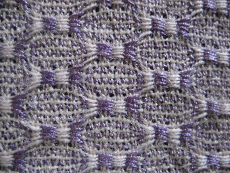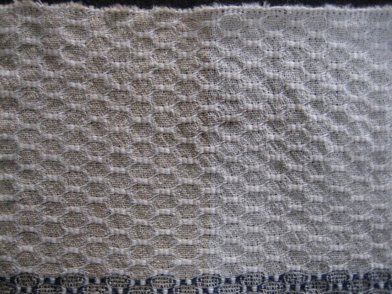 This version of the fabric, while not wholly opaque, is much crisper. A small amount of light remains when switching from the plain weave to float sections, but otherwise, it’s nearly solid. I was easily able to beat to square so that made me hopeful that if I was happy with this fabric, I could make yardage without too much difficulty.