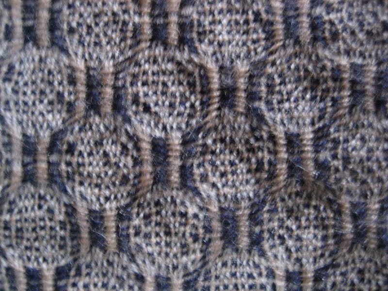 First pass of colors was back to the dark blue and light brown. Here it is against the light brown weft: