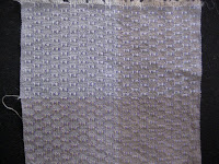 This version of the fabric, while not wholly opaque, is much crisper. A small amount of light remains when switching from the plain weave to float sections, but otherwise, it’s nearly solid. I was easily able to beat to square so that made me hopeful that if I was happy with this fabric, I could make yardage without too much difficulty.