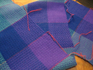 So, the decision now is whether I want to use the purple or the blue as the warp. The fabrics are distinctly different – and switching them out, warp vs. weft, gives different looks, but all of them are worth going after I think. Even the monochrome ones are interesting – but they’d be a bear to weave.